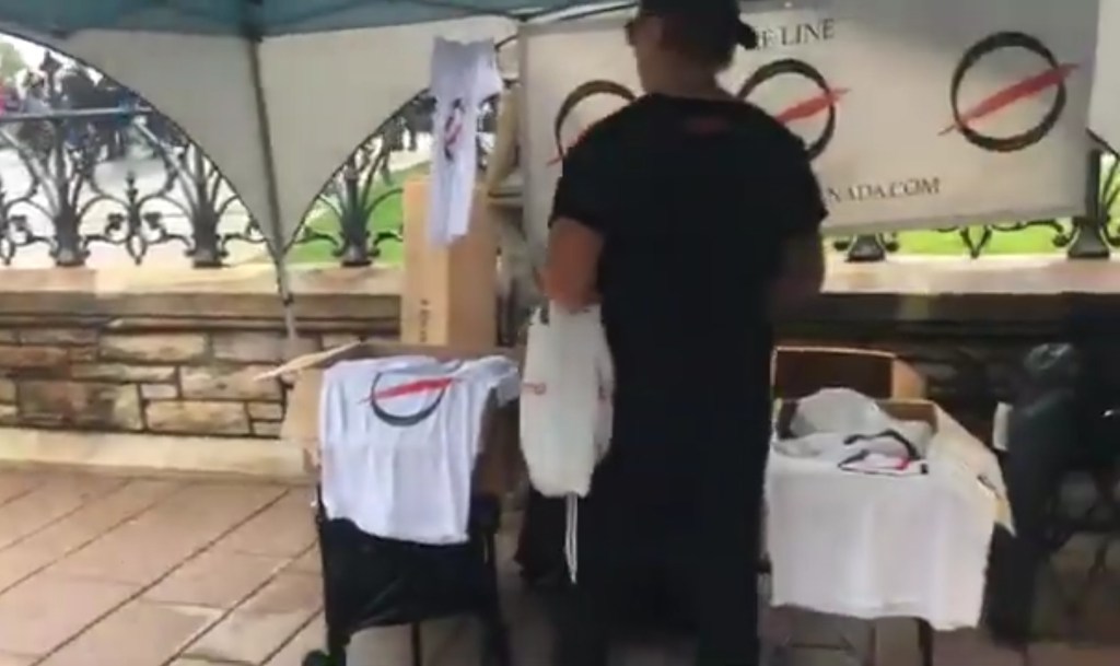 Lacking a vendor permit, The Line can’t sell merchandise. It can, however, gift t-shirts to people who donate $30 at the merch booth. Donations which are not taxed and do not pay for licensing or permits.