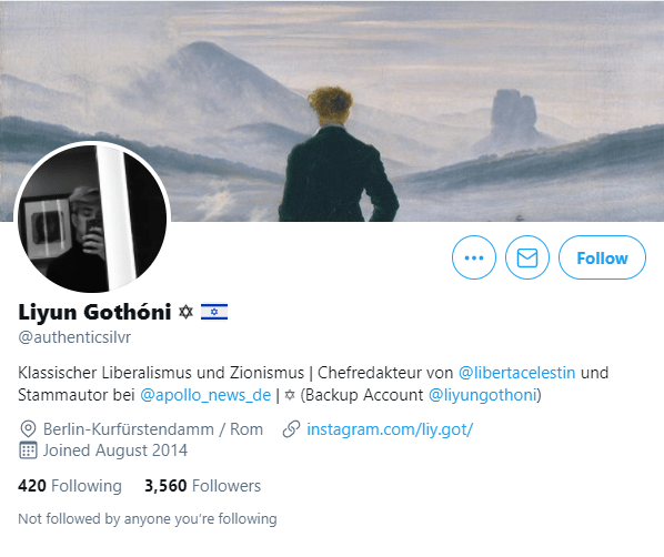 But the only things that identify this person as Jewish are those two symbols, a single Instagram photo of them visiting the Western Wall during a tour of Israel, and their advocacy for Israel. None of which is actually a sign of being Jewish, or Israeli, but could be carried out by any sympathetic tourist in that country.