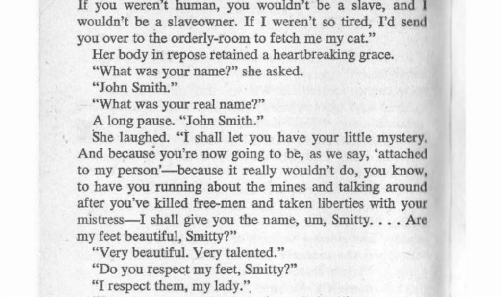 This is so fucking horny and not at all sci Fi. There’s nothing about this society or narrative that really needs a sci-fi trapping. It would make as much sense if it was set in the 18th Century Caribbean. This is just BDSM-based political intrigue.