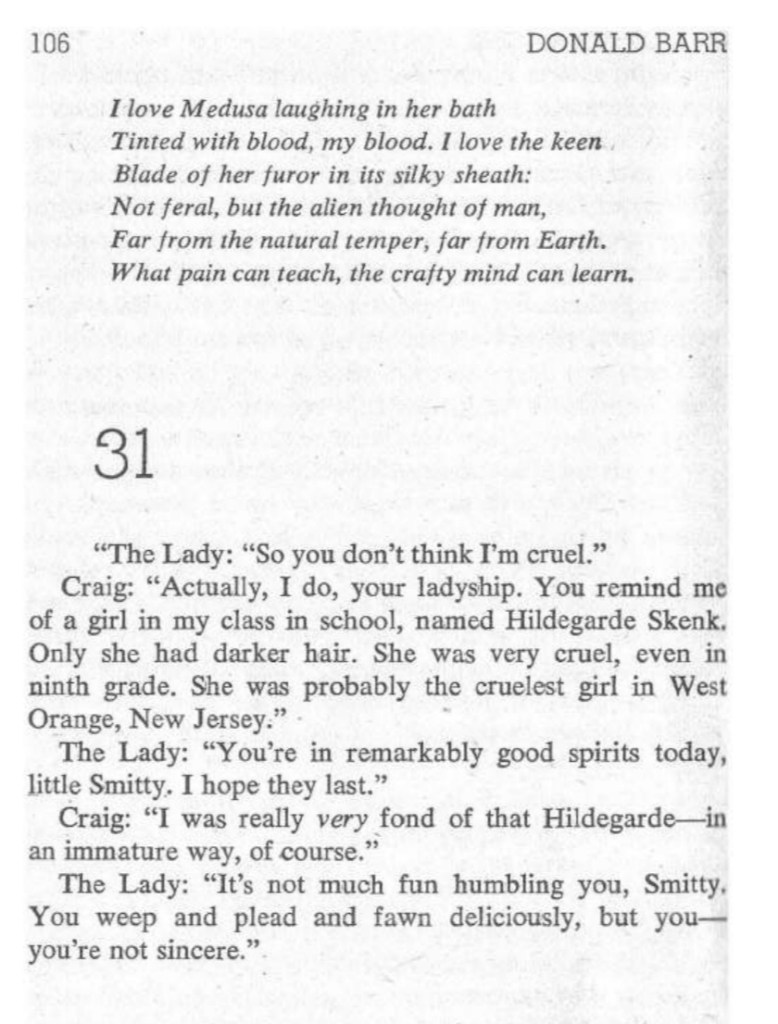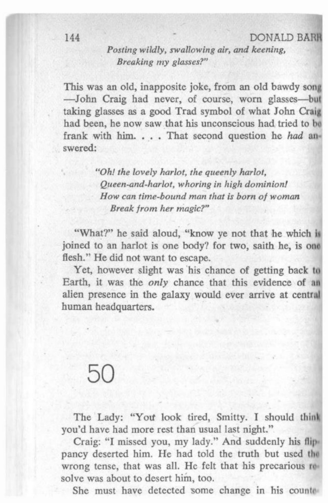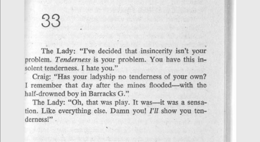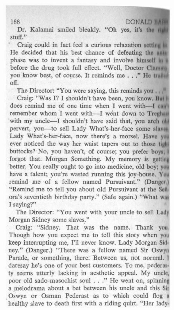 The author’s snipe at Henry Kissinger is curious. Kissinger was Secretary of State at the time this book was written and Barr, a former OSS agent, appears broadly critical of him. Barr questions “the Secretary’s” mastery of “Realpolitik” in this book. We can hardly doubt that Kissinger was a master of Realpolitik at the time Barr wrote this; the snub seems to be directed at Realpolitik itself. John Craig makes decisions that appear irrational to his Liberal colleagues. He implies that his Secretary would sell out the principles of MIPTO, yet it is Craig who betrays the antislavery clause that he himself wrote. This is excused by the semantic finger-crossing John engages with at the beginning of the book: he never meant to abolish slavery, only the economic dependency on it. The Liberals are implied to be ideologically blind to the reality of human nature, with Craig explaining that they believe that humans engage in slavery and cruelty because of social institutions. Craig, on the contrary, believes that it is human nature to desire the enjoy the savage pleasure of slavery.