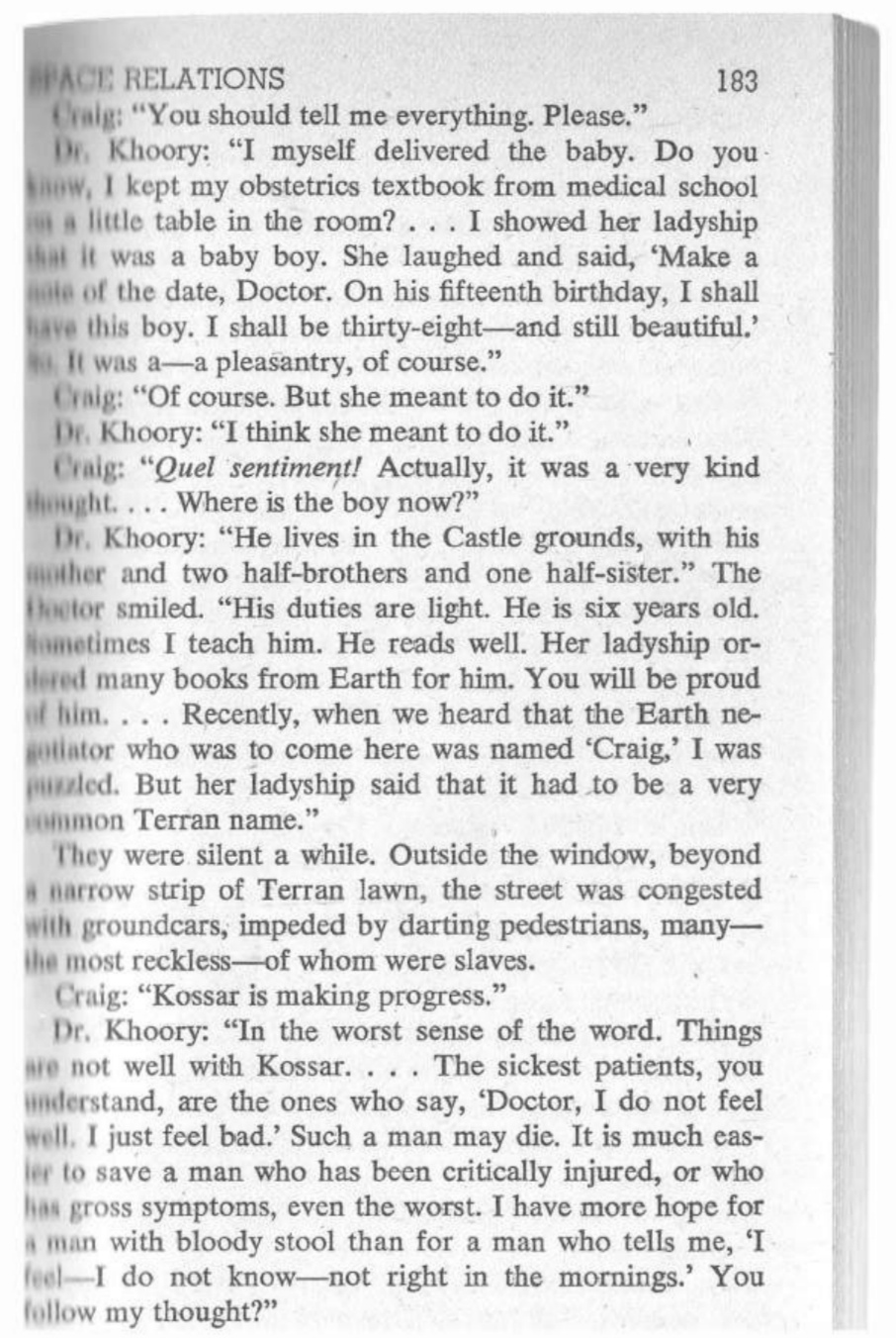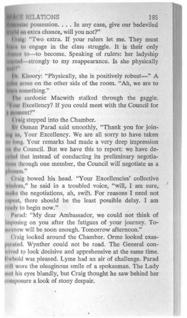 This answers the question of his colleague at the start of the book, “why do you want to get these fucking slavers into space NATO so badly.” It’s because he has space Stockholm Syndrome. And again, Craig is a Trad.