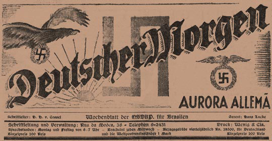 This may be a reason the Ratlines led to Sao Paulo. Franz Stangl, the commandant of the Treblinka concentration camp, was one of the infamous Nazis who escaped to Sao Paulo with his associates at the end of the war. Sao Paulo had also been the home of the publisher of Deutscher Morgen: