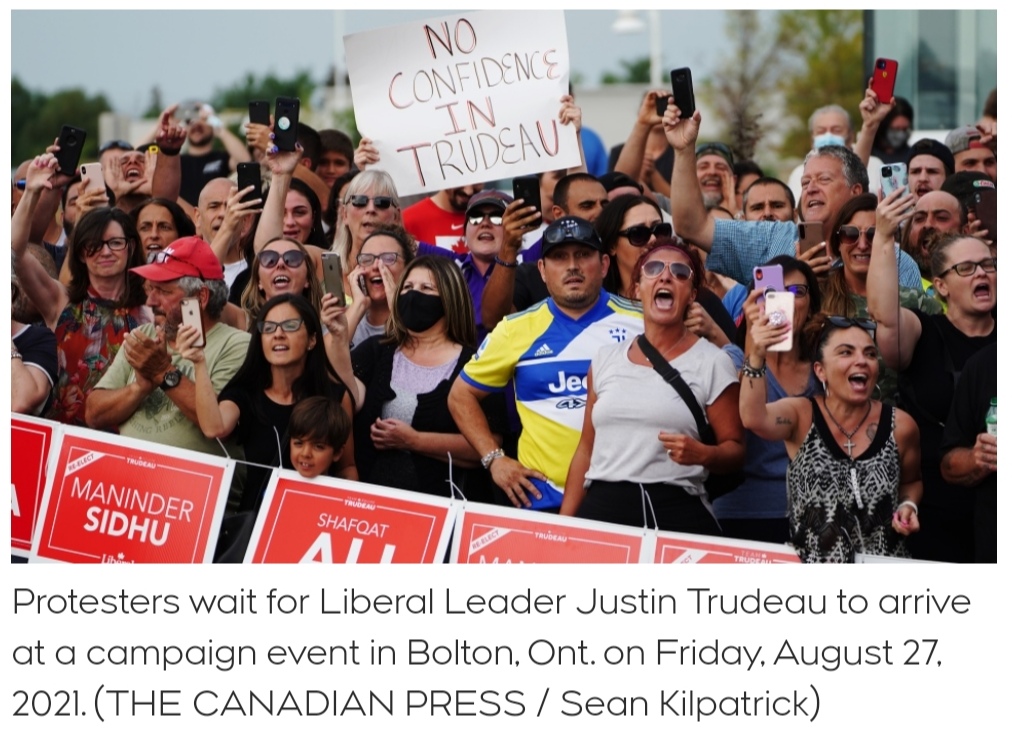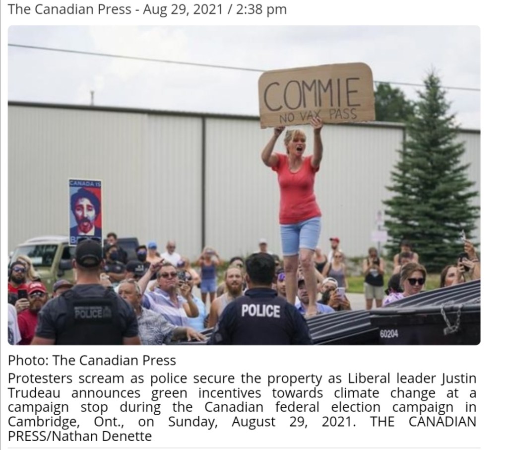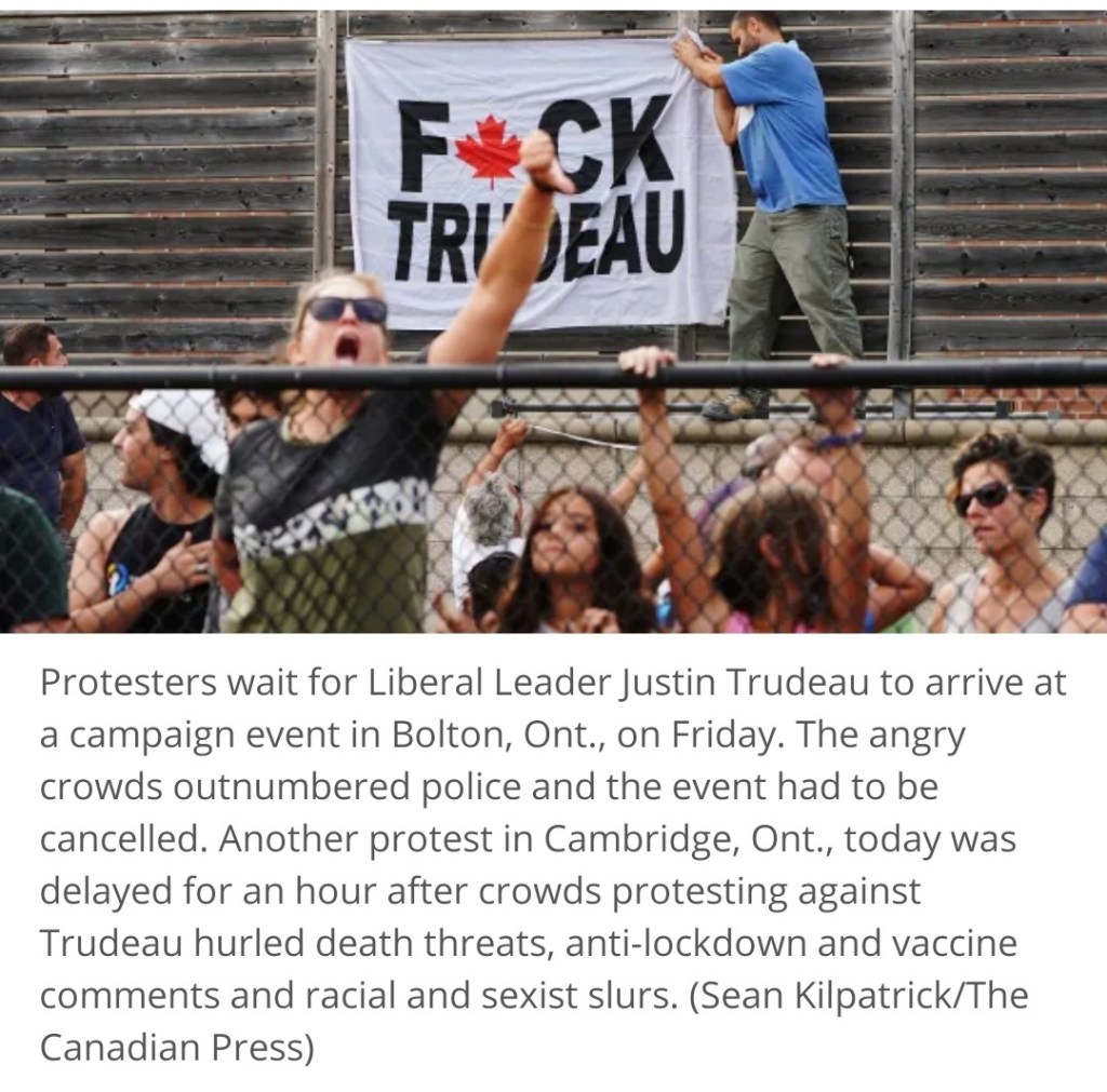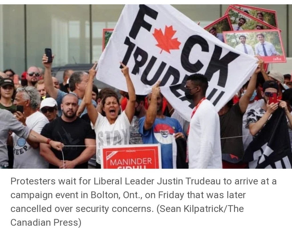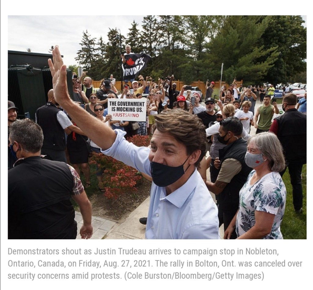 Anti-mask, lockdown, and vaccine protesters have followed Trudeau to campaign stops across Ontario, culminating in one so large and threatening that the police and Prime Minister’s security detail could not guarantee his safety.