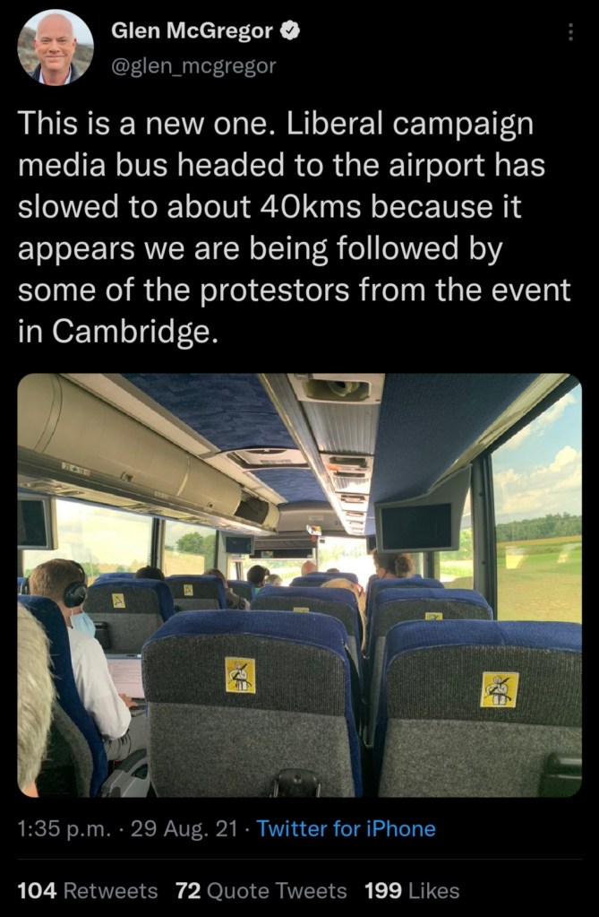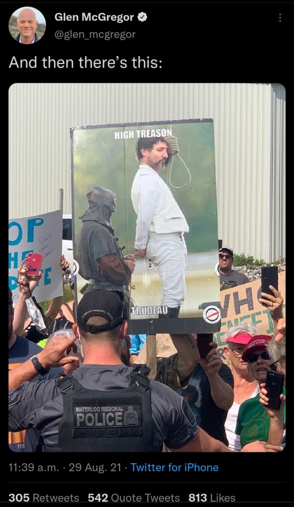The Trudeau campaign protests are unlike anything seen in the country in decades. The PM’s security could reasonably anticipate that these crowds could become violent: the most wild outcome would be someone trying to impress Finn Wolfhard by becoming a John Hinckley Jr. copycat.