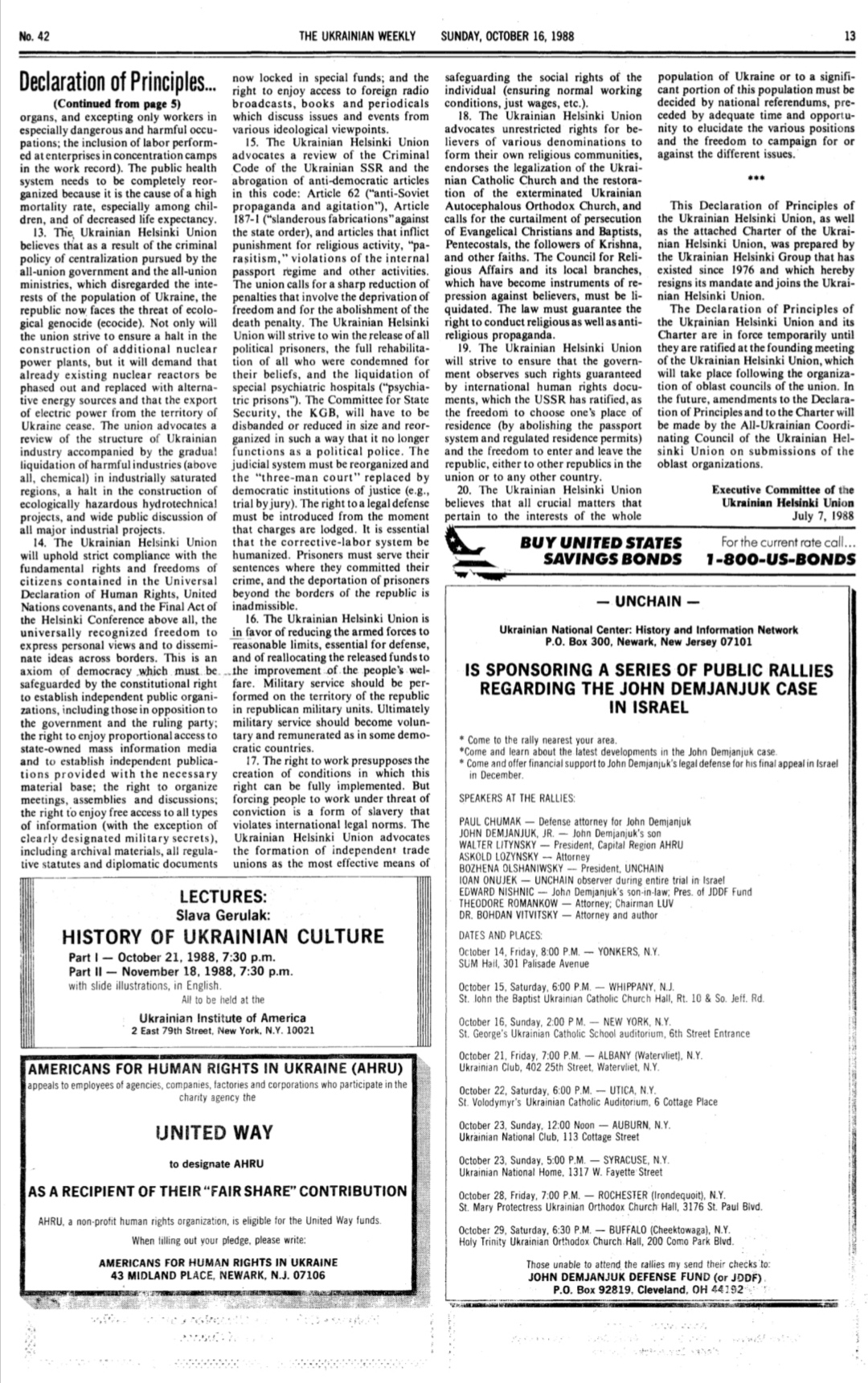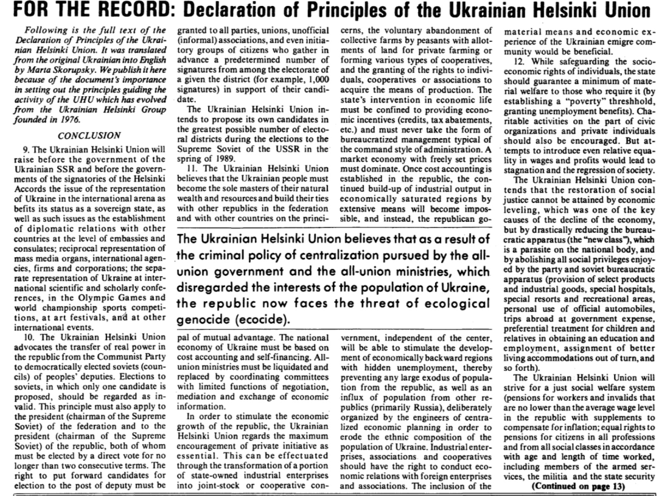 The principles of the UHS had been written by Chornovil before the Union was publicly declared on 7 July 1988. They included: