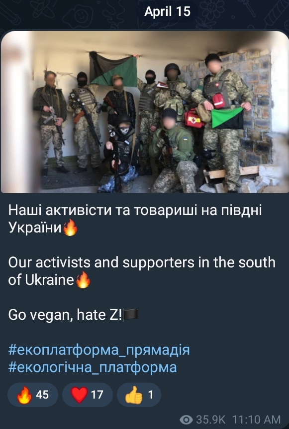 Another Telegram post caught my eye: a forwarded message from Ekologichna Platforma (Ecological Platform), a green anarchist group: