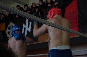 This devotion to healthy bodies seems to be directed in a very specific way. In a post from 3 July 2014 AO says that the “material base” of their movement is a Mixed Martial Arts gym at a social center called “Citadel” (ยซะฆะธัะฐะดะตะปัยป). The 29 January 2011 event that drew “thousands” in Lviv was itself a fighting tournament organized by AO.