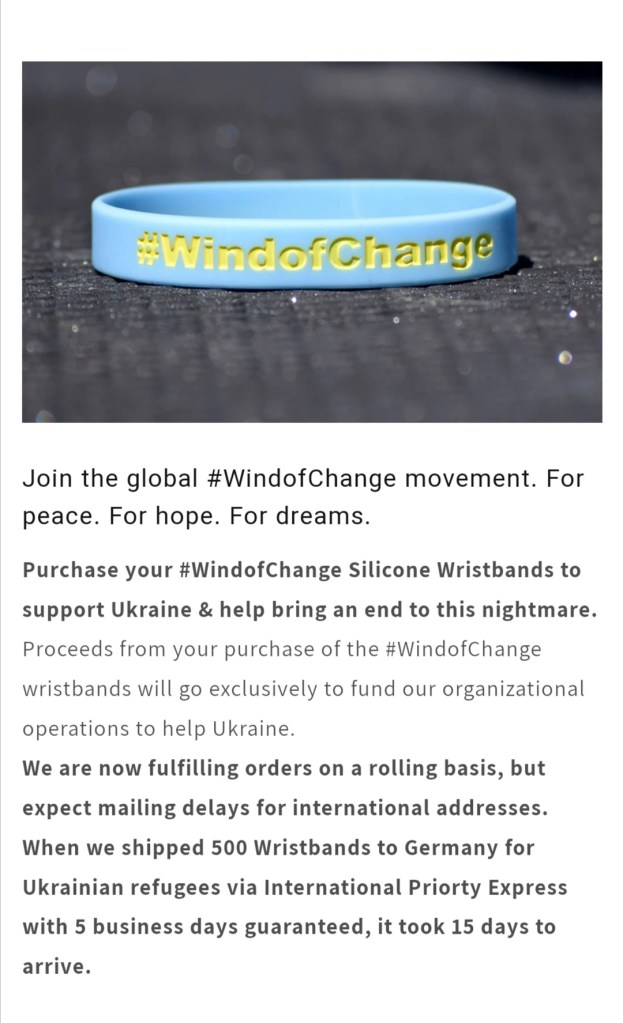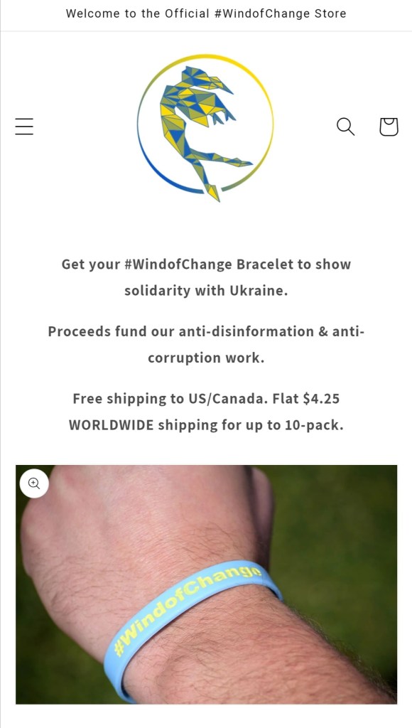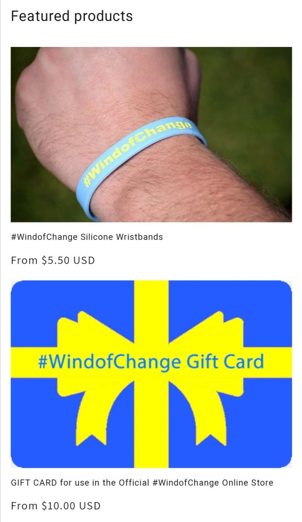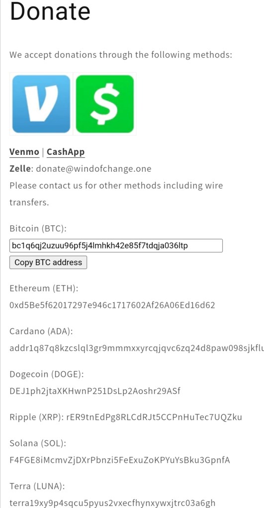 The menu items “Our Mission” and “Support Ukraine” are not actually links. There is nothing on the website saying what WindOfChange actually does.