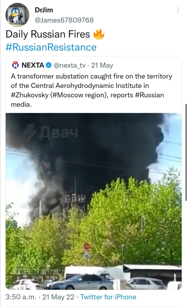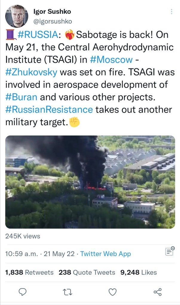 On 22 May 2022 Twitter’s algorithms recommended me an intriguing tweet about sabotage in Russia: