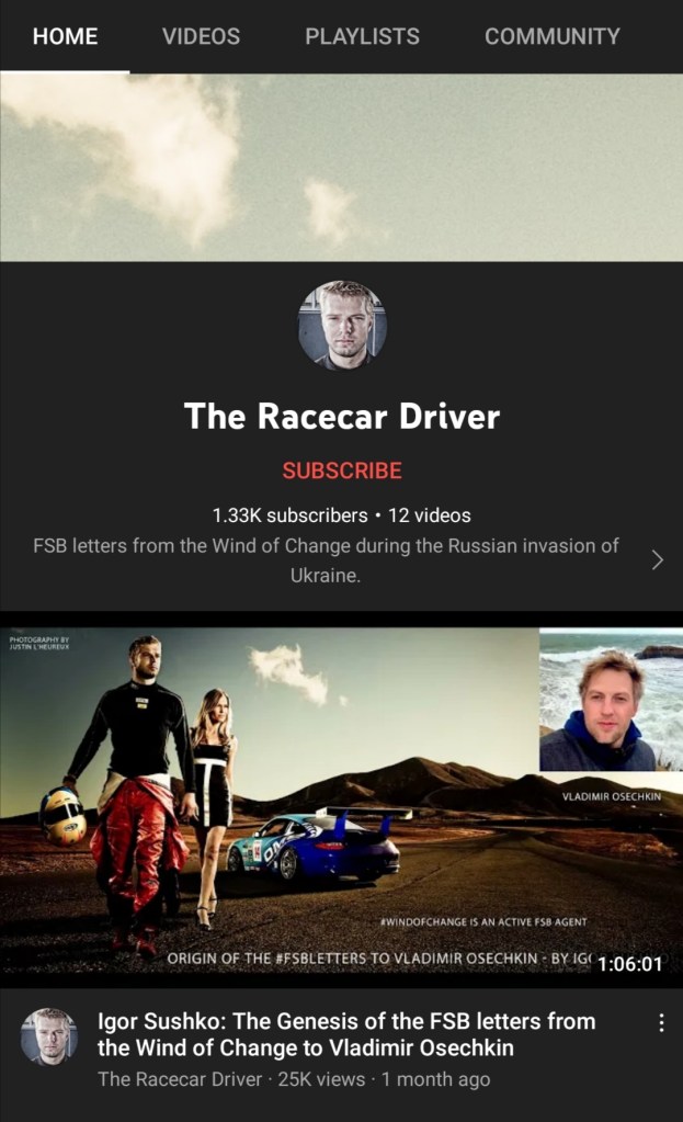 “The Racecar Driver” has 12 videos on his YouTube channel: a ten part series about the FSB Letters bookended by two interviews with the private British broadcaster, LBC.