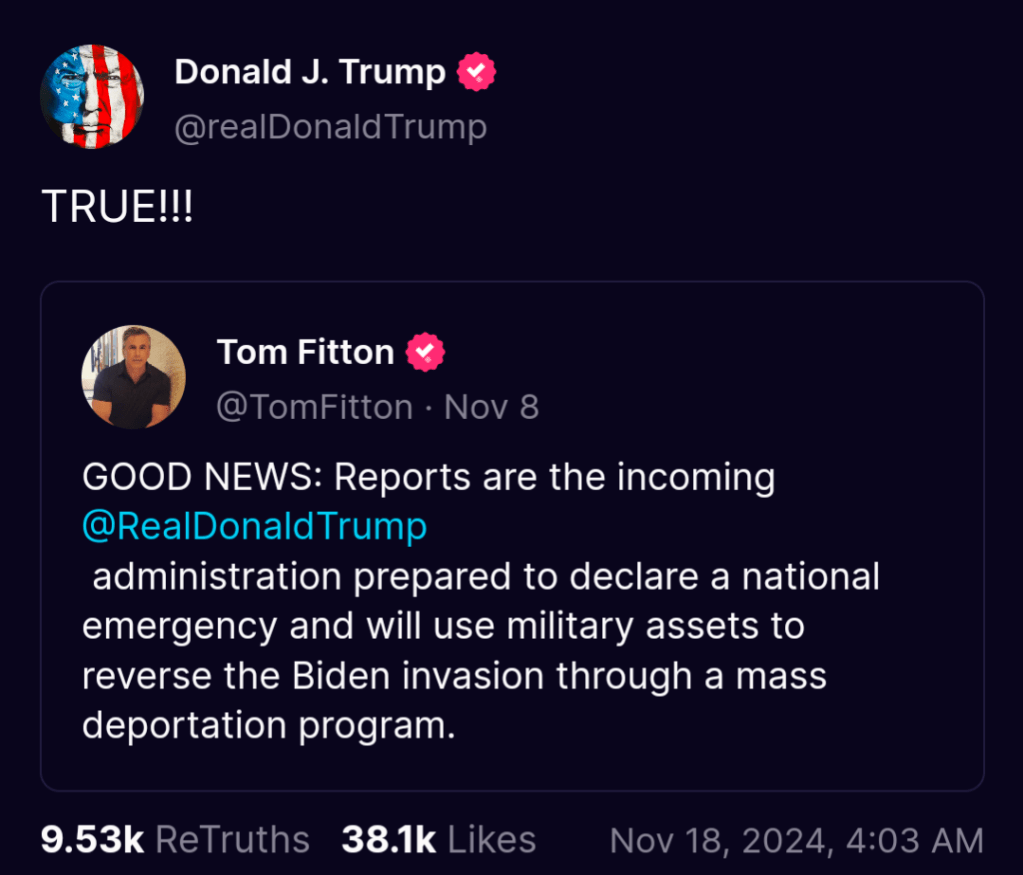 Shortly after Trump’s victory in the 2024 election he confirmed that he would resume the national emergency and use military force to expel the “invasion” of migrants. This includes an estimated 11 million undocumented immigrants.