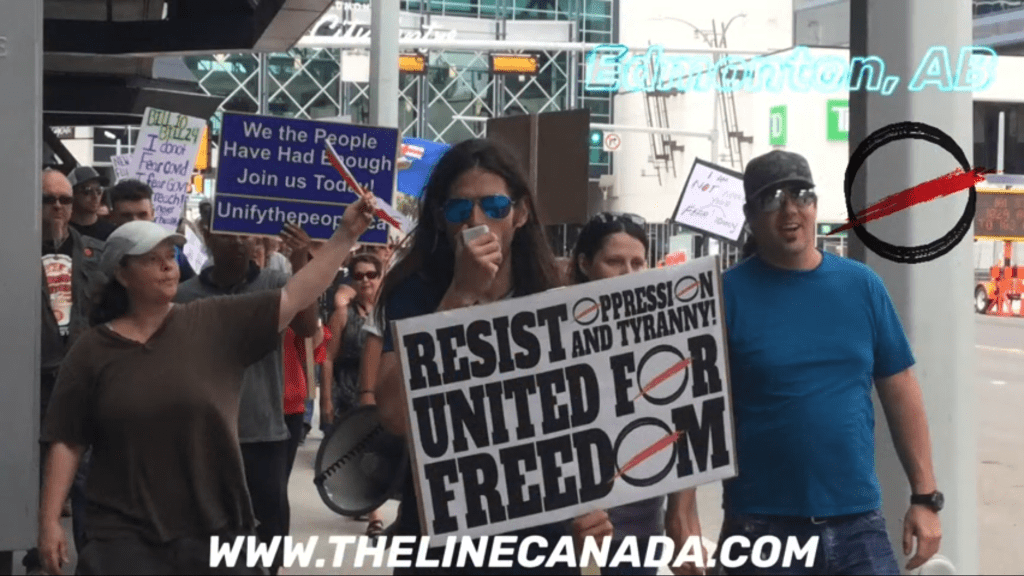 Anti-mask protests began in Canada on July 18th, 2020. The slogans and symbols of THE LINE were there, in major cities from Halifax to Vancouver.